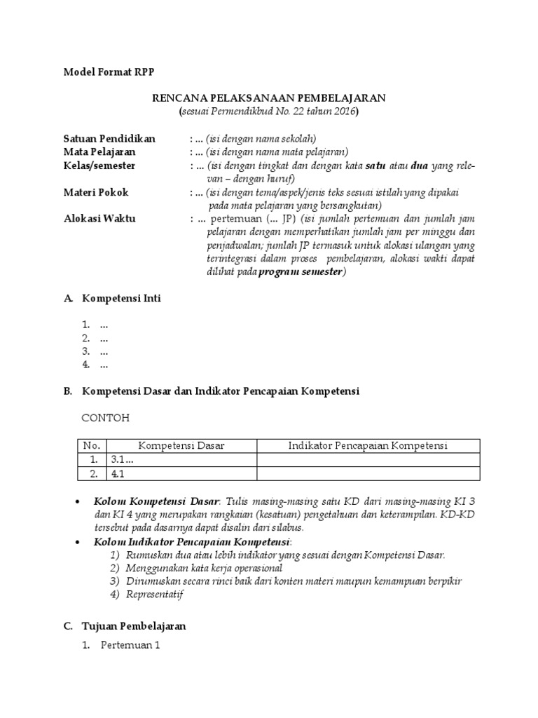 Sistematika Rpp Sesuai Permendikbud No 22 Tahun 2016 Mgmp Ips Indramayu