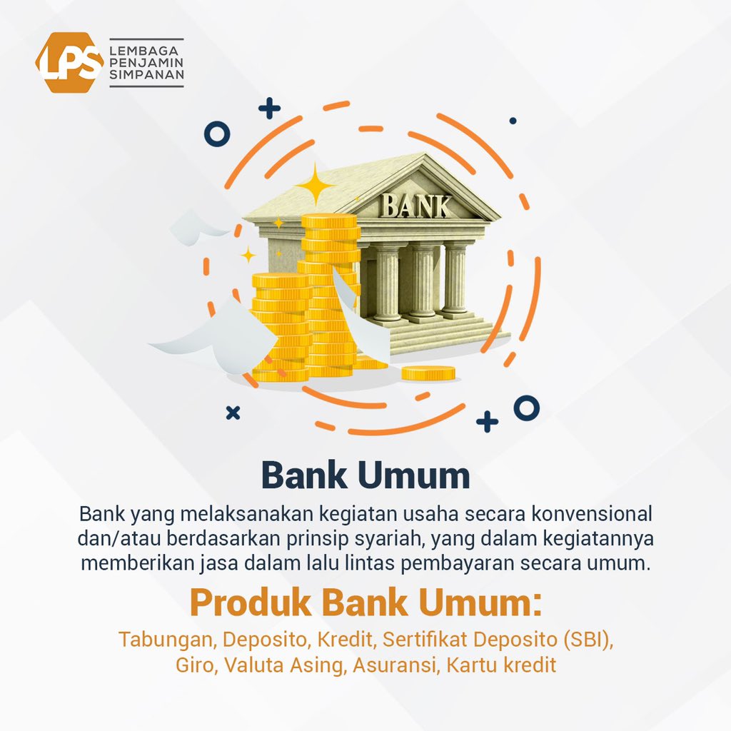 Produk produk bank umum adalah antara lain. Dilansir dari situs resmi otoritas jasa keuangan definisi bank umum tertuang dalam undang undang nomor 10 tahun 1998 tentang perbankan. Bank adalah tempat menyimpan uang dan meminjam uang serta berbagai produk lainnya juga terdapat pada bank bank memiliki peran penting dalam dunia usaha dan perekonomian bank juga memiliki berbagai jenis bank sesuai dengan fungsinya masing masing misalnya bank sentral dan bank umum bank sentral berfungsi mengatur kebijakan moneter dan bank umum sebagai bank pelaksana.