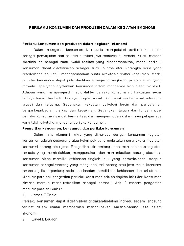 Model Pelaku Ekonomi Perilaku Konsumen Dan Produsen Dalam Kegiatan Ekonomi Hasan Mustofa
